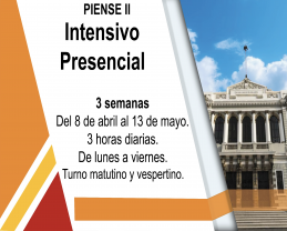 - PIENSE II - Intensivo presencial: del 8 de abril al 13 de mayo; tres horas diarias, de lunes a viernes, turnos matutino y vespertino.