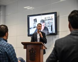 El doctor Carlos Iván Moreno Arellano, coordinador General Académico y de Innovación de la UdeG, quien moderó la charla en el Centro Universitario de Ciencias Económicas y Administrativas (CUCEA), dijo que es importante no olvidarse del pensamiento crítico.