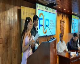 Felicitó a alumnos y docentes por compartir sus proyectos y experiencias en inglés. Sabemos que sus proyectos se presentaron ya en sus planteles en días pasados, pero este espacio se nos ha brindado para compartir las buenas prácticas, reconocer el esfuerzo de los profesores participantes en el programa y reiterar la felicitación a los estudiantes más destacados de dichas exposiciones”, declaró.