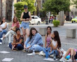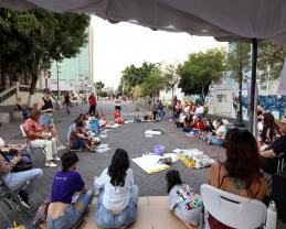 Integrantes de la colectiva “Desayuno feminista”, de la asociación civil Federación de Mujeres Universitarias, en conjunto con el Centro de Estudios de Género del Centro Universitario de Ciencias Sociales y Humanidades (CUCSH), el Sistema de Educación Media Superior (SEMS) de la Universidad de Guadalajara (UdeG), y, entre otras instancias, llevaron a cabo el círculo de reflexión feminista en torno a la menstruación y menopausia libre de tabú, en la Rambla Cataluña.
