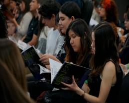 Durante la presentación, el maestro Cesar Barba Delgadillo, director general del Sistema de Educación Media Superior (SEMS) de la Universidad de Guadalajara (UdeG), y la licenciada Lilia Mendoza Roaf coordinadora de Difusión y Extensión, lanzaron preguntas a los adolescentes de Prepas UDG con el fin de nutrir la reflexión y ahondar más en las metodologías propias.