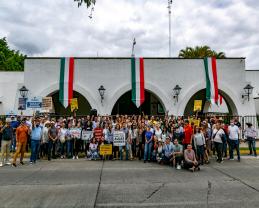El contingente, integrado por 123 universitarias y universitarios, exigió la devolución de 140 millones de pesos destinados a la conclusión del Museo de Ciencias Ambientales y que arbitrariamente fueron recortados por el gobierno estatal.