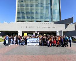 Un total de 658 estudiantes, trabajadores y profesores del plantel salieron del edificio de la Rectoría General rumbo a Casa Jalisco