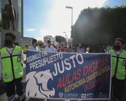 En la marcha 144, comunidad de dicho plantel pidió por la devolución de los 140 millones de pesos que le quitó el gobierno del estado a la Universidad para la construcción del MCA