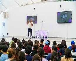 Fuera del convencionalismo que representan las ferias profesiográficas, este día, la Preparatoria 15 del Sistema de Educación Media Superior (SEMS) recibió el Jam de Profesionistas promovido por la Cátedra del Futuro organizado por el Centro de Estudios Estratégicos para el Desarrollo de la Universidad de Guadalajara (UdeG) donde representantes de distintas carreras de esta Casa de Estudio expusieron su área de formación con el fin de que las y los adolescentes en etapa de aspiración al pregrado, puedan tomar una decisión más informada.