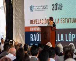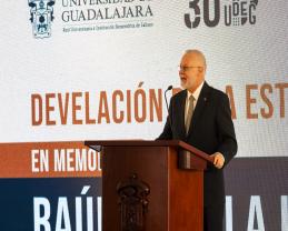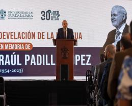 En una ceremonia con funcionarios y miembros de la comunidad universitaria, destacó que Raúl Padilla es considerado uno de los grandes pilares de la UdeG, junto con figuras como José Guadalupe Zuno, Enrique Díaz de León y Constancio Hernández Alvirde, y por ello había de recordarlo para siempre en el ingreso a edificio de la Rectoría General de esta Casa de Estudio.