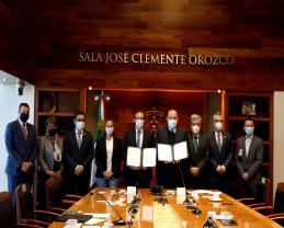 La ceremonia de firma del convenio tuvo lugar en la sala José Clemente Orozco del edificio de la Rectoría General de esta Casa de Estudios.
