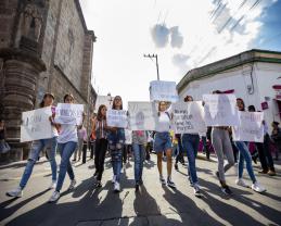 Fueron tres consignas que resonaron por diversas calles del centro histórico de Guadalajara: “Universidad con seguridad”, “No más violencia” y “Ni una más”.