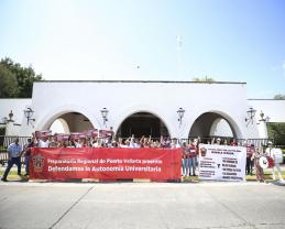 “Estamos aquí de manera pacífica y organizada para manifestar nuestras ideas y defender a la grande y Benemérita Universidad de Guadalajara”, indicó.