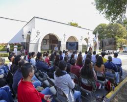 Realizan Máster class 24, ante comunidad del CUCiénega, afuera de Casa de Jalisco