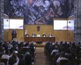 Subrayó que el Consejo General Universitario (CGU) ha entregado 105 doctorados Honoris causa; el primero a una mujer fue en 1972, a la doctora Irene Robledo García y el de Bachelet es el décimo tercero que esta Casa de Estudio otorga a mujeres destacadas.