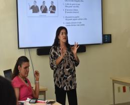 “Es muy importante que como docentes aprendan esta forma de comunicarse, para que ayuden a sus alumnos sordos a que aprendan y logren el mismo nivel que el alumno oyente”, comentó la doctora Teresita de Jesús Morales Ortega, quien participó como instructora en el taller.