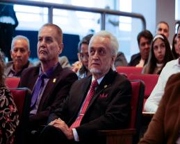 Con una mano que sostiene el micrófono y la otra que dibuja sus palabras en el viento, Jurado Parres sentenció: “En el tiempo que me queda, hasta mi último aliento se los dedico a mis jóvenes, a mi comunidad y a mi Universidad. Gloria eterna a la Universidad de Guadalajara”, pronunció ante las y los presentes, quienes respondieron con otra ovación que colmó de aplausos cada rincón del recinto.