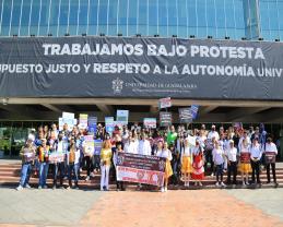 “No nos vamos a cansar de manifestarnos hasta que el gobernador Enrique Alfaro Ramírez regrese a la UdeG lo que le corresponde”, externó la Secretaria de Asuntos Académicos y Culturales del STAUdeG, Natalia Juárez Miranda.