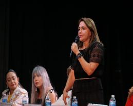 La licenciada Lilia Mendoza Roaf reconoció el gran esfuerzo que realizan profesores de Prepas UDG por seguir promocionando la Filosofía como rama elemental del pensamiento, trabajo que abona a construir eventos como este.