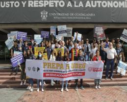 El líder estudiantil Leobardo Terríquez reprochó que el gobierno no ha respetado la autonomía universitaria, ya que la UdeG no es muros ni paredes, esta Casa de Estudio son la comunidad estudiantil, académica y trabajadora.