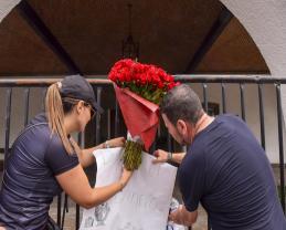La secretaria del plantel del Sistema de Educación Media Superior (SEMS), maestra Ruth Noemí Orozco Pérez, colgó el ramo de rosas en las vallas instaladas frente a Casa Jalisco; un arreglo floral empleado como recordatorio del presupuesto arrebatado a la construcción del MCA.