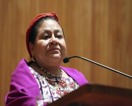 La doctora Rigoberta Menchú Tum es una líder indígena, activista guatemalteca, defensora de la paz, la justicia social y los derechos humanos de los pueblos indígenas en Guatemala. Asimismo, es embajadora de buena voluntad de la Organización de las Naciones Unidas para la Educación, la Ciencia y la Cultura (Unesco). Se ha destacado por su liderazgo al frente de las luchas sociales en el ámbito nacional e internacional.